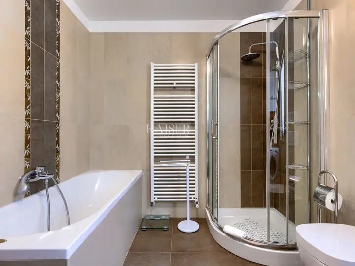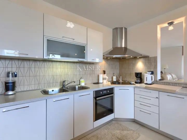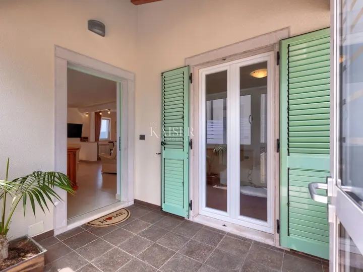 Kaiser Immobilien predstavlja edinstveno nepremičnino z dvema stanovanjema in pogledom na morje. Nepremičnina se nahaja le 500 metrov od morja in se nahaja v enem izmed bolj znanih zalivov v tej regiji. Majhno istrsko mesto s številnimi promenadami, divjimi plažami, restavracijami in neokrnjeno naravo bo na dosegu roke. Hiša je obdana z zelenim pasom v zaledju, pred njo pa je prostorno parkirišče. Pogled seže na morje in nedotaknjeno naravo tega kraja. Nepremičnina obsega 260 m2 bivalne površine, namenjene dvema stanovanjema in se nahaja na vrtu s skupno kvadraturo 1.300 m2. Nepremičnina je v celoti opremljena in pripravljena za uporabo. Opremljen je s klimatsko napravo in centralnim ogrevanjem na plin. Opremljena je z vrhunskimi materiali, masivnim lesom in kamnom ter oblogami iz marmorja. Brezčasen dizajn izraža kombinacijo modernega in istrskega stila in naredi to vilo udoben dom. Apartmaja sestavljata dve spalnici s kopalnico in prostoren prostor za druženje v dnevni sobi s kuhinjo in jedilnico. Na vrtu se nahaja bazen v skupni kvadraturi 24 m2 s pripadajočim prostorom za sončenje in pomožni objekt. Objekt se uporablja kot kuhinja z ločeno sobo in kopalnico. Vila je edinstvena priložnost zaradi odlične celoletne lokacije in mirne okolice. Lokacija nepremičnine omogoča hitro povezavo s središčem mesta in vsemi življenjskimi vsebinami. Nepremičnina dosega odlične rezultate pri turističnem najemu in se lahko uporablja kot naložba ali družinska vila. Za več informacij kontaktirajte agenta. Ana Beović ana@kaiser-immobilien.hr +385 91 618 3332