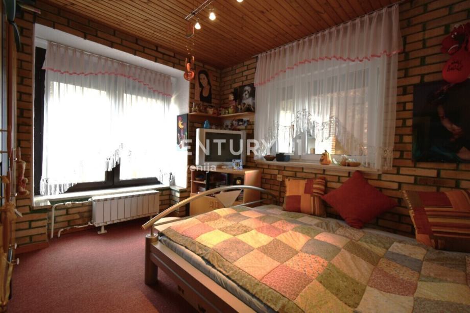 Na odlični lokaciji v Laškem, v mirnem predmestnem okolišu stanovanjskih hiš, imamo na prodaj prostorno in kvalitetno grajeno družinsko hišo s čudovito teraso, garažo in nadstreškom. Hiša ima 150,6 m2 uporabne površine (233,3 m2 neto tlorisne površine) in se prodaja skupaj z ograjenim zemljiščem v velikosti 783 m2. Pred hišo je parkirišče za dva avtomobila, na koncu pa garaža v izmeri 19,8 m2 (5,66 m x 3,5 m; vrata: širina 2,25 m – višina: 2 m) ter 39,6 m2 velik nadstrešek (dolžina 12 m, širina 3,3 m). Pod hišo je zelenica, kjer se nahaja še vrtna lopa, sadno drevje ter vrt. Dostop do objekta je enostaven, urejen in asfaltiran. Oddaljenost od centra mesta znaša približno 650 metrov. Hišo odlikujejo naslednje značilnosti: 1) zares kvalitetna gradnja z ustrezno izolacijo; 2) čeprav je delno vkopana, so prostori čisti in suhi; 3 ) gre za končno hišo v slepi ulici (malo prometa); 4) lega je sončna (orientiranost SV – JZ); 5) veliki, svetli prostori s potencialom za preureditev; 6) dovolj prostora za parkiranje 5 avtomobilov. V primeru razširjene družine, pa lahko za bivalne prostore izkoristite kletne prostore ali pa se dokončno izdela cela mansarda. Ogled in nakup te hiše zares priporočam vsem, ki si želite kvaliteto bivanja v predmestju čudovitega mesta Laško ter z ogromnim potencialom preureditve po lastnih željah.