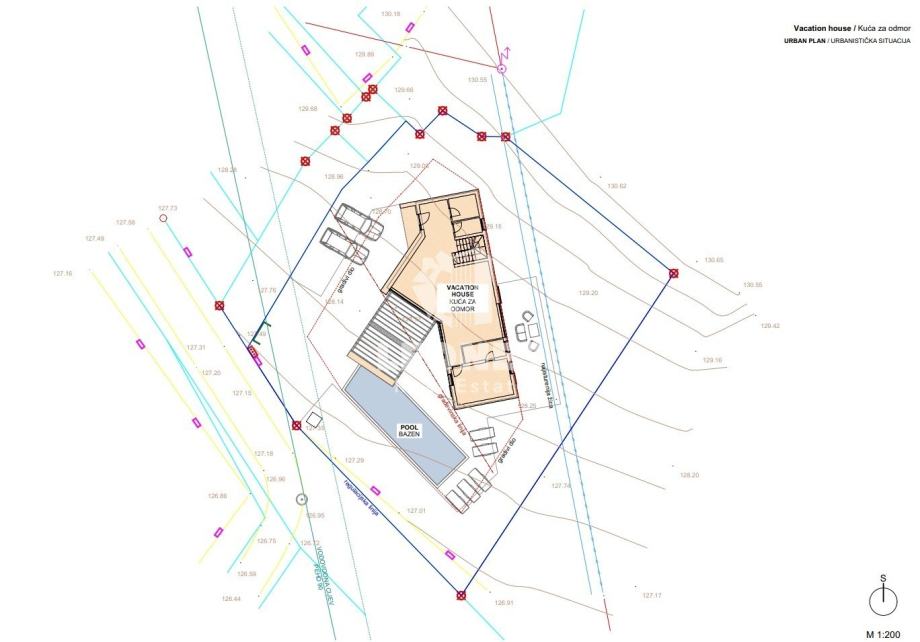 Iz dnevne sobe je izhod na prostorno pokrito teraso ob kateri se nahaja prostoren bazen ter dvorišče.