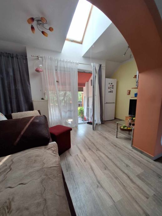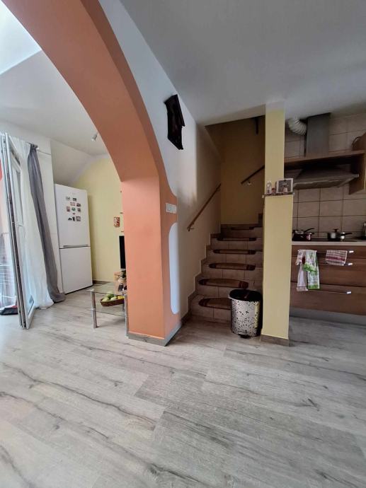 Ob vhodu v stanovanje stopimo najprej na hodnik, desno od njega se nahaja kopalnica z wc. Iz hodnika in predsobe vstopimo v osrednji prostor, ki zajema kuhinjo z jedilnico ter dnevno sobo, iz katere je izhod na balkon, kjer lahko v miru posedite in popijete jutranjo kavico. Po stopnicah se povzpnemo v zgornjo etažo, kjer se nahajata spalnica in še ena manjša soba, ki lahko služi kot otroška soba ali pisarna.