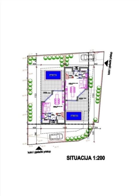 Velikost gradbene parcele je 288m2 in na njej bo urejen bazen 5mx3m.