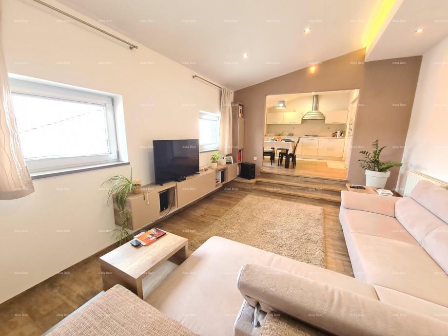 V prvem nadstropju hiše se nahaja veliko stanovanje s 3 spalnicami, hodnikom, kopalnico, kuhinjo z jedilnico in dnevno sobo, veliko teraso cca 20 m2.