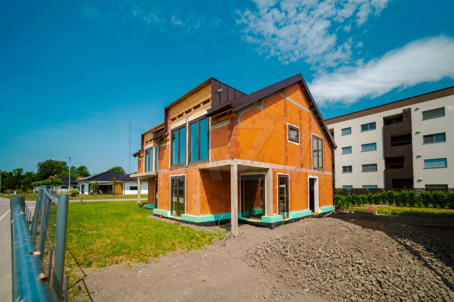 Hiša dvojček, Pomurska – Apače, zgrajeno l. 2025, P+1, neto tlorisna površina 142,42 m2, 80,00 m2 zelenice, možnost dokupa nadstrešnice. Cena: 265.114,83 EUR.