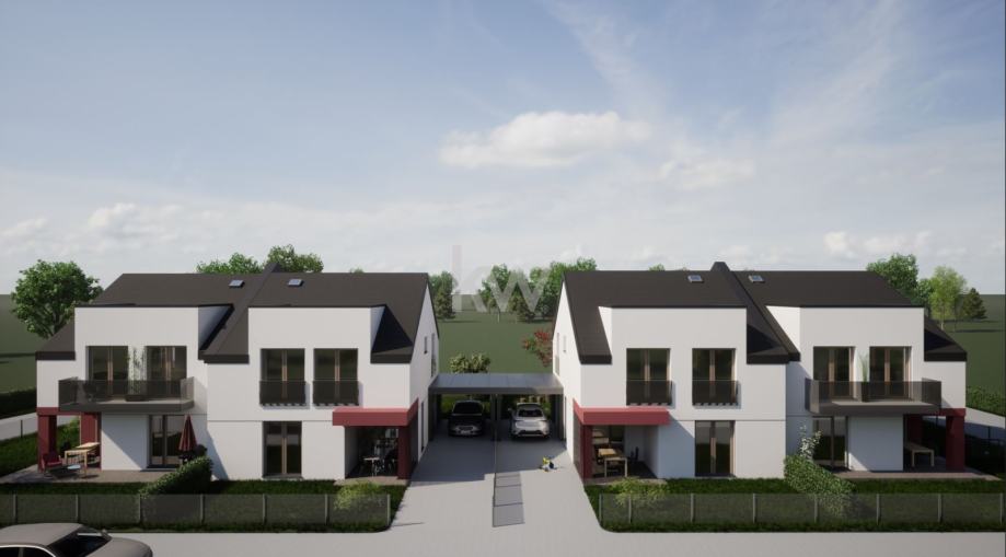 Parkirno mesta: hiša dvojček 1 in 4 sta predvideni 2 pokriti parkirni mesti in tlakovano dvorišče pred nadstrešnicami. Za hišo dvojček 2 in 4 je predvideno po 1 pokrito parkirno mesto in pred pokritim parkiriščem tlakovano dvorišče.