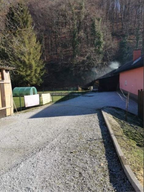 Hiša je ograjena z leseno ograjo, kar zagotavlja zasebnost. Poleg hiše se nahaja še kovinsko ograjena parcela-idealno za vrt, domače živali, dodatne objekte in investicijo.