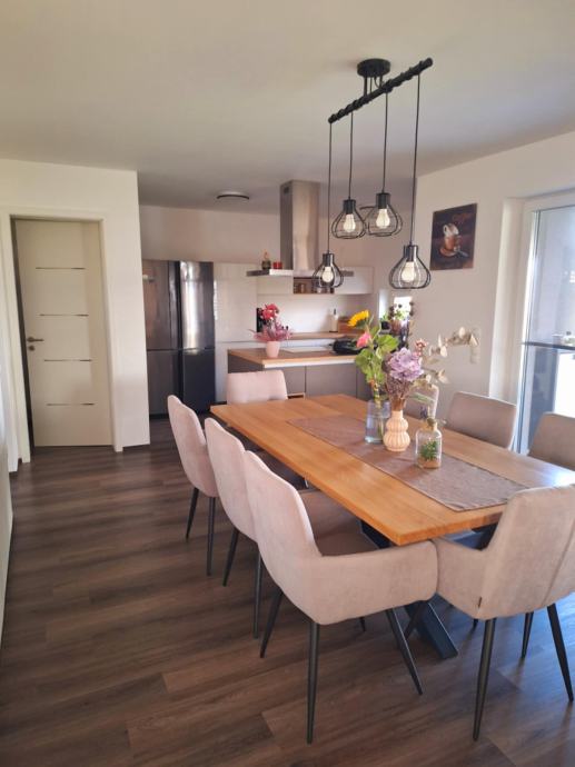 Prodaja se enostanovanjska hiša,zgrajena leta 2022 v Dornavi.Stopa se v predprostor,kjer se na levo stran nahaja prostorna kuhinja,jedilnico in dnevno sobo.Iz dnevnega prostora je izhod na teraso,ki je pokrita.V nadstropju so razporejena velika spalnica,ter še dve enaki sobi.Kopalnica z ločenim straniščem,je urejena s tušem,je pa tudi prosor za kad.Hiša se prodaja s pohištvom.Fasada je demit,z 20 cm izolacije.Ogrevanje je na toplotno črpalko.Okolica je urejena,ima namakalni sistem,ter košnja z robotsko kosilnico.V okolici se nahaja vsa potrebna infrastruktua(vrtec,šola,trgovina,pošta,zdravnik).Hiša je primerna za družine ali pare,ki si želijo zunanji prostor.Prodaja se izrecno zaradi pomanjkanja časa,in selitev v stanovanje.Vljudno vabljeni na ogled.