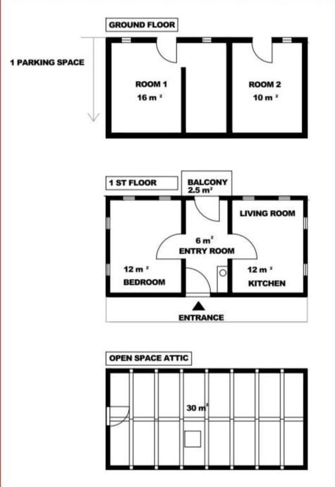 Hiša je zaščitena kot kulturna dediščina – profana stavbna dediščina. Hiša ima klet, pritličje in neizkoriščeno podstrešje, katerega je možno primerno preurediti. Ocenjena kvadratura bivanjskih pritličnih prostorov ( dve sobi + hodnik) je cca 35 m2, kletni prostori cca. 20 m2 (dve kleti) ter neizkoriščeno podstrešje cca. 35 m2 , skupna površinaj cca. 90 m2.