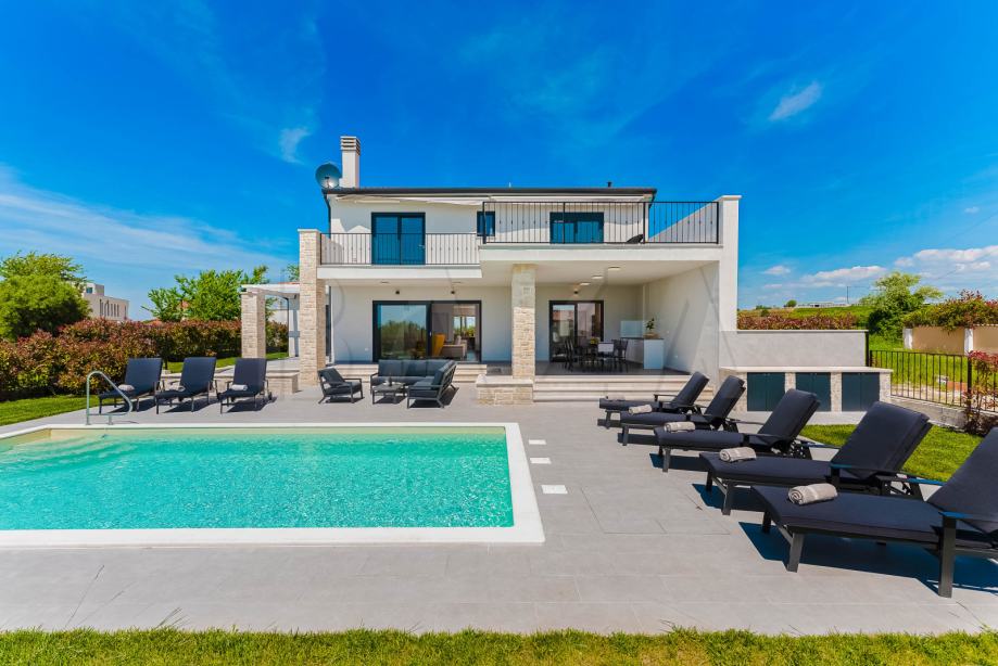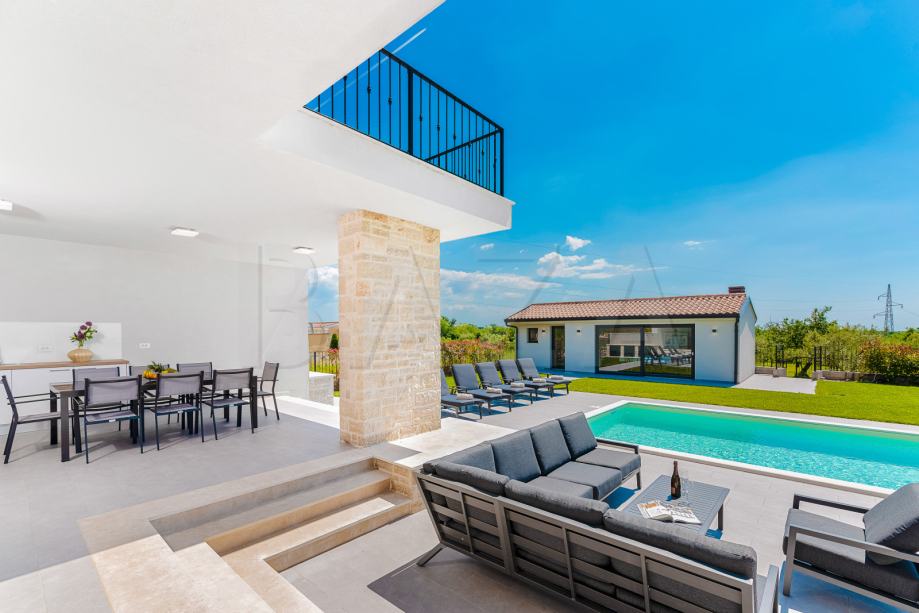 Samostojna hiša, Hrvaška – Brtonigla, zgrajeno l. 2024, skupna površina 290,00 m2, zemljišče 3.350,00 m2. Cena: 1.299.000 EUR.
