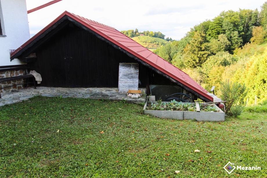 Zemljišče ob objektu znaša 4.500 m2, delne ravnine okoli hiše je cca 500 m2 na tem delu je urejen vrt, ostalo je hribovit del, ki se spušča proti cesti. Včasih je bila zasajena vinska trta, sedaj je travnik, nasajeni so orehi in sadno drevje.