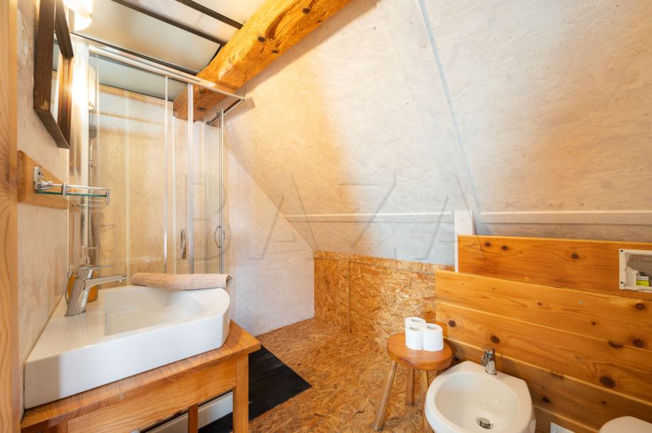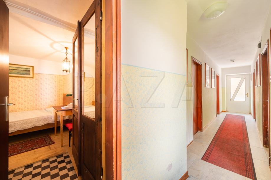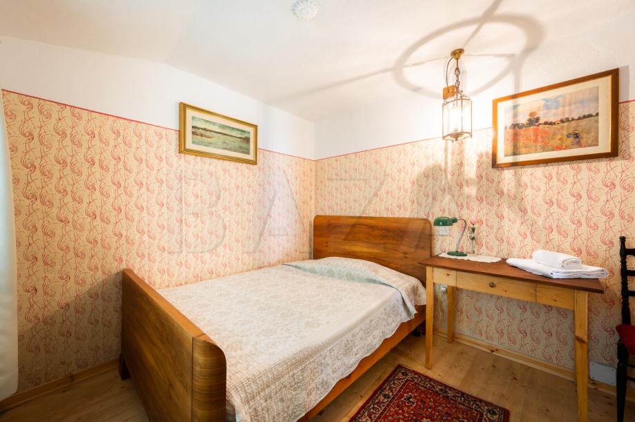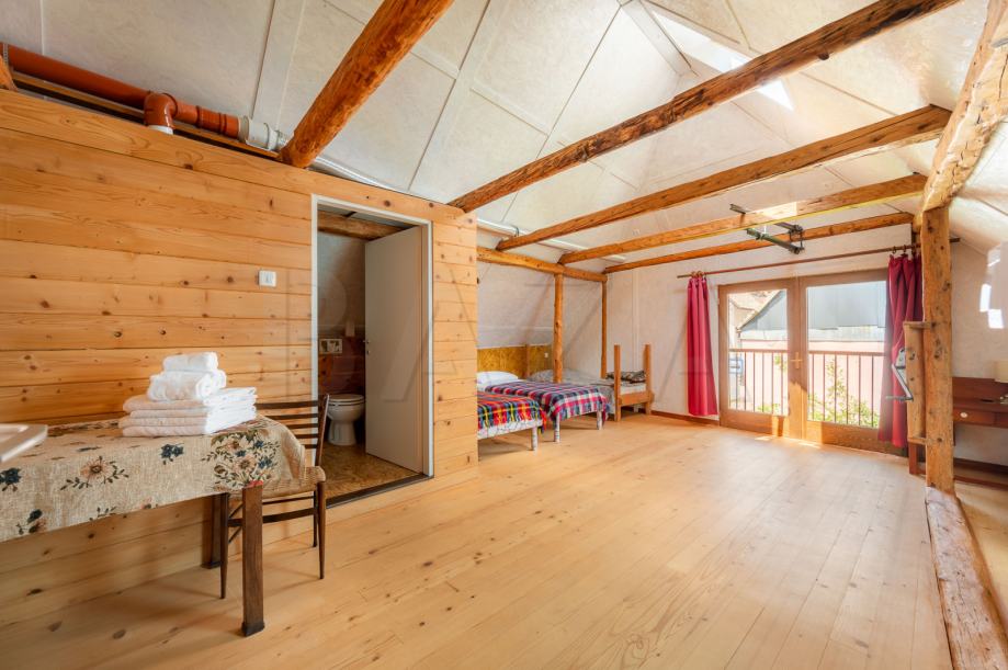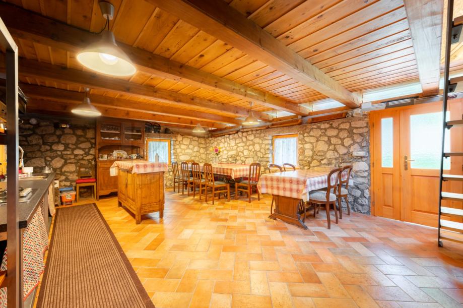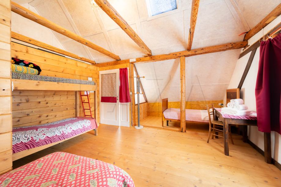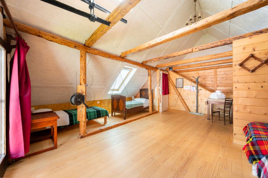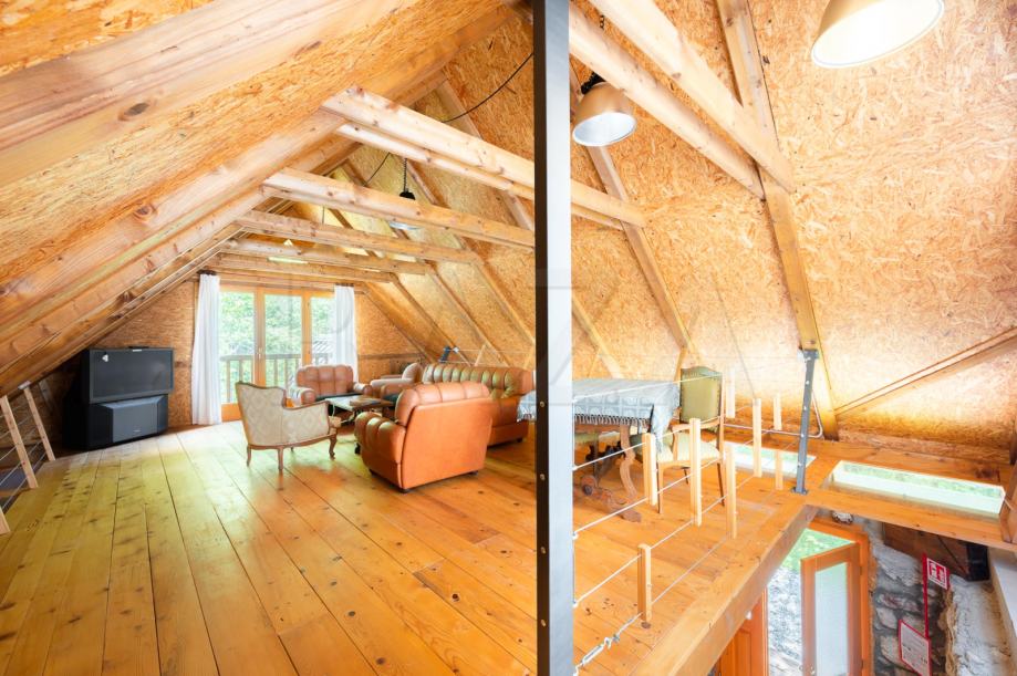 V čudoviti vasici pod Mangartom prodamo hišo dvojček, ki je trenutno preurejena v hostel in obsega čudovito ohranjeno recepcijo, predprostor, tri spalnice (1 x 2 samostojni postelji, 2 x zakonski postelji – vsaka soba ima svojo kopalnico), dodatne sanitarije ter utility. V zgornje nadstropje vodijo stopnice, mansardo sestavljata dve večji spalnici (4 in 5 postelj) s kopalnicama ter dodatna kopalnica, ki se jo uporablja po potrebi. Hiša je bila preurejena s strani trenutnega lastnika, ki je ohranil vse ključne elemente starih soških hiš in hišo preuredil v funkcionalno bivalno enoto.