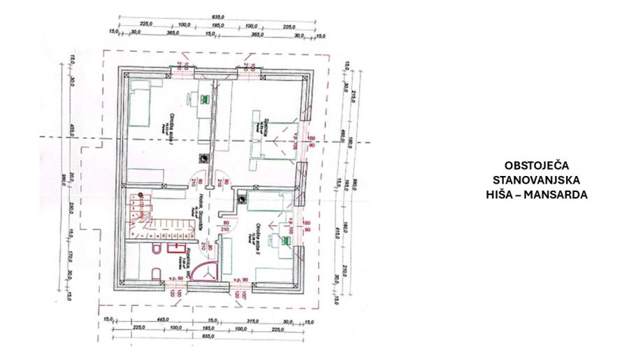OBSTOJEČA STANOVANJSKA HIŠA (1960) – 239,62 m² urejenih prostorov