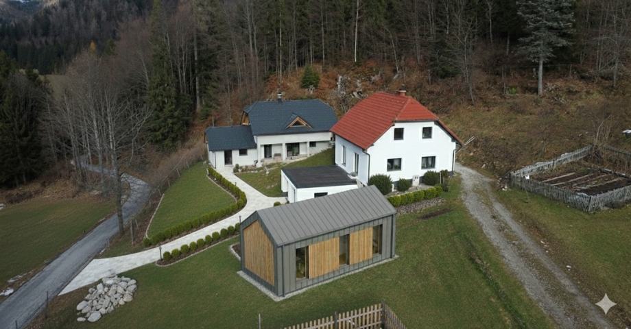 Druga stavba na posesti predstavlja izjemno turistično priložnost. Zasnova objekta omogoča ureditev dveh ločenih apartmajev, vsak primeren za 4–6 oseb. Predvidena je vgradnja talnega gretja ter možnost postavitve kamina, kar daje objektu karakter sodobnega gorskega chaleta. Stavba ponuja idealno izhodišče za ureditev butičnega apartmajskega turizma, celoleten oddih ali kombinacijo oddajanja in lastne rabe.