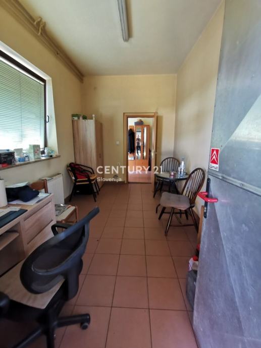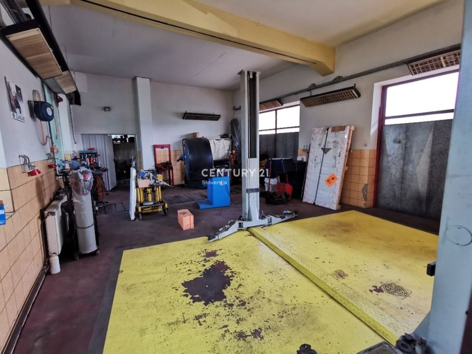 Poslovni del: Pisarna, kopalnica / wc, kurilnica, delavnica ( 3 x delovno mesto, 2x dvigalo, vulkanizerski del, 1x kanal, možnost ličarskega dela )