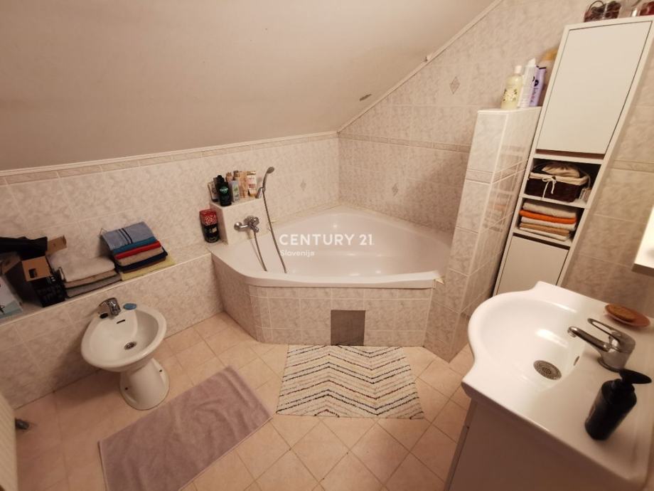Stanovanjski del: Pokrita terasa, predsoba, prehod v poslovni del, kopalnica s tušem, soba ( shramba / salon), stopnišče, pralnica, spalnica 1, kuhinja z jedilnico v povezavi z dnevnim prostorom, hodnik, spalnica 2, spalnica 3, kopalnica, garderoba, soba
