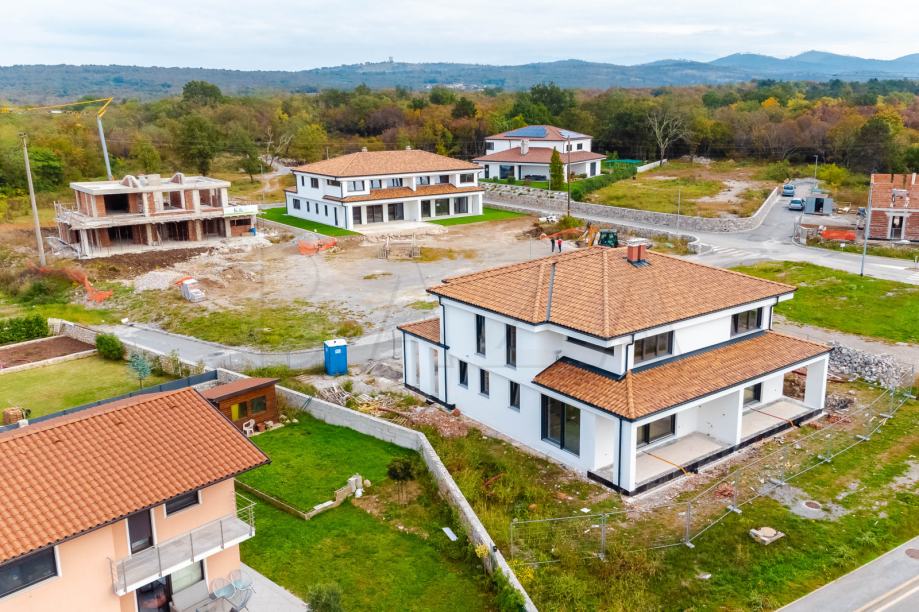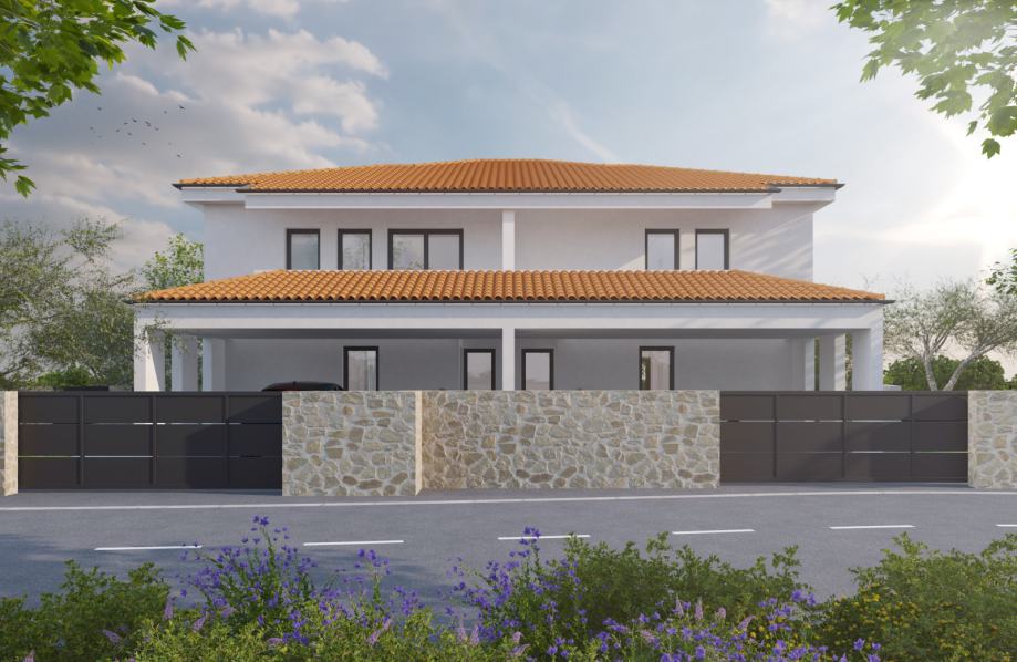 Enota v dvostanovanjski hiši, Goriška - Komen (Opatje selo), novogradnja, pričetek gradnje 2024, P+1, izdelano »na ključ«, skupna površina 189,09 m2, bivalni prostor 121,09 m2, pokrito parkirišče, predviden prevzem pomlad 2025. Cena: 618.000 EUR z vključenim DDV.