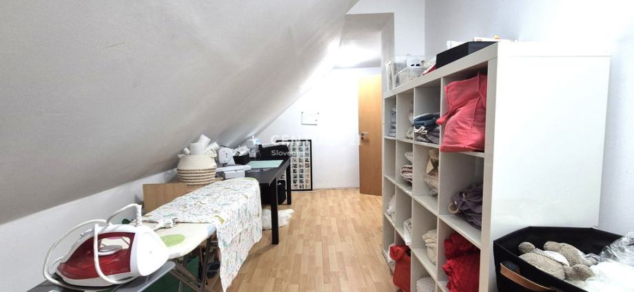 Nadstropje: spalnica, večja otroška soba, dve manjši sobi, izhod na pokrito teraso (21,5 m²)
