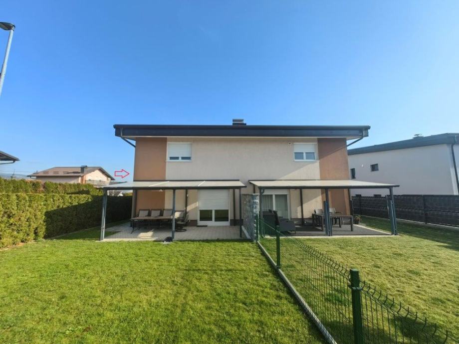 Dodaten opis: moderno zasnovan dvojček s pokrito teraso in nadstreškom za dva avtomobila; podatki o stavbi: neto tlorisna površina: 122,50 m²; etažnost: P+1 (pritličje in 1.nadstropje), gradnja: klasična opečna; leto izgradnje 2013 (vseljeno leta 2015); talne obloge: parket (osrednji prostor in sobe) in keramika (hodnik, stranišče, kopalnica in utility); fasada: Demit (debelina 15 cm); ogrevanje: centralno ogrevanje (VAILLANT plinska peč) in talno gretje (hodnik, stranišče in kopalnica); streha: enokapnica z naklonom strešin 10°, pločevinasta kritina; stavbno pohištvo: plastična okna in vhodna vrata; klimatizacija: urejena; podatki o zemljišču: 273 m², ograjeno; priključki: vsi (elektrika, voda, kanalizacija, …); lega: ravna in sončna; oprema: delno opremljeno; varovanje: alarmi/video sistem; drugo: zunanji kamin in zunanja lopa, dostop: asfaltirana cesta; vseljivo: vseljivo po dogovoru; ogledi: možni po predhodnem dogovoru; pravno stanje: nepremičnina je vpisana v zemljiško knjigo; pogoj nakupa: kupec plača davek na promet nepremičnin v višini 2% od vrednosti nepremičnine; opomba: podatki o velikosti zemljišča in stavbe ter letniku izgradnje stavbe (vir: Geodetske uprave RS)
