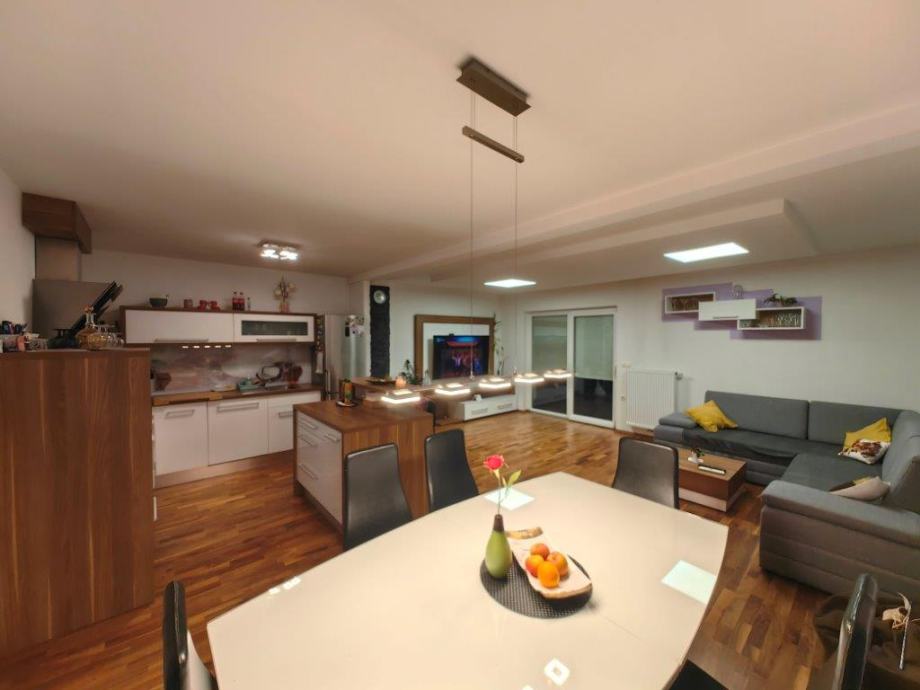 V naselju Slovenska Bistrica je naprodaj delno opremljen moderno zasnovan dvojček . Osrednji prostor je odprt in se povezujejo na moderno oblikovano pokrito teraso. Pred hišo stoji nadstrešek za avto.