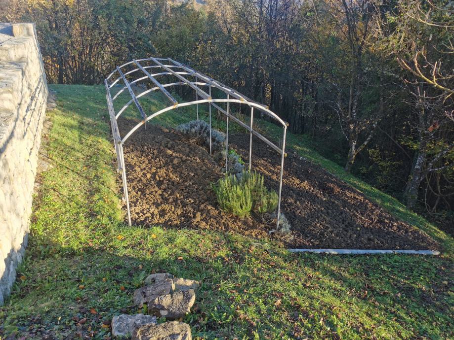Okoli hiše je sadovnjak, kjer rastejo stare sorte jablan, hruške, češnje, orehi, kutina ter breskve.