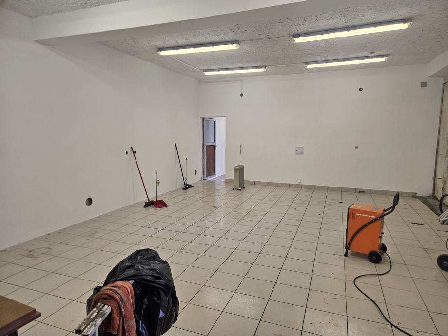 V pritljičju 75m2, dva vhoda klasičen na ključ in velika električna dvižna vrata na daljinca.