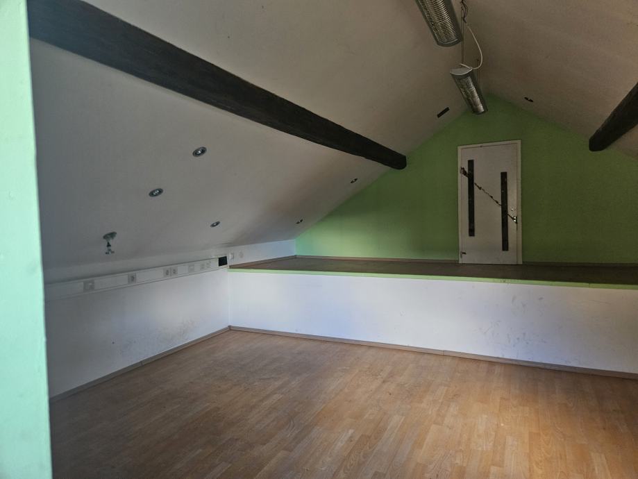 V nadstropju 35m2, z ločenim vhodom preko zunanjih stopnic.