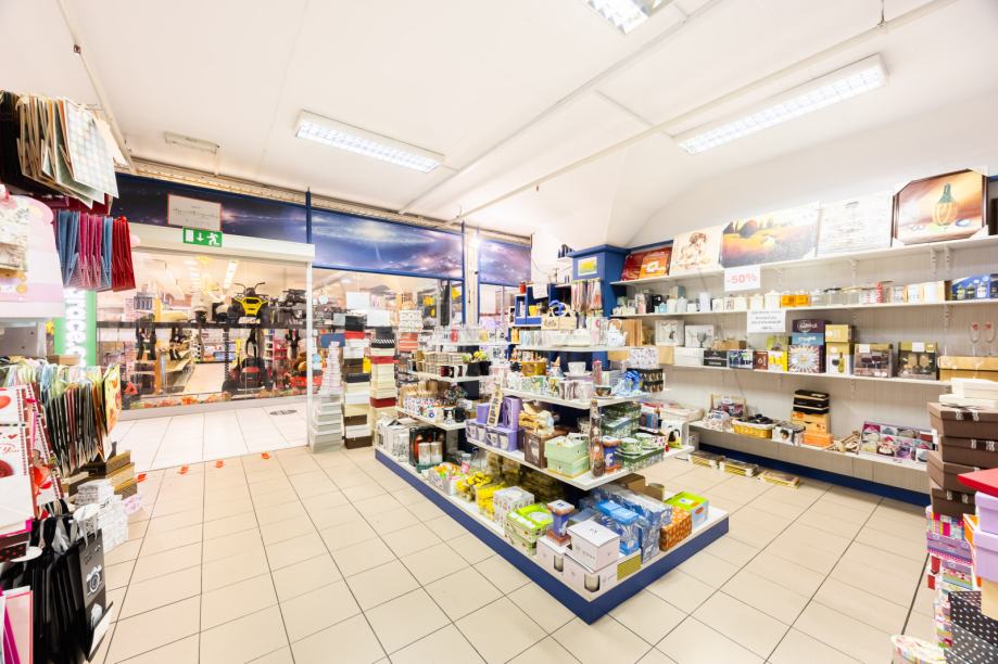 Tlorisna zasnova trenutno obsega dva ločena lokala s prodajnim prostorom in možnostjo shrambe v ozadju prostora. Prostora se lahko z manjšim posegom združi. Po potrebi je možen dogovor o še dodatnem povečanju površine. Mesečni stroški se obračunavajo pavšalno in znašajo cca 7 EUR na bruto m2. Vključujejo porabo trženje, vodo, kanalščine, čiščenje in zbiranje odpadkov. Elektrika in ogrevanje se obračunata po mesečni porabi najemnika. Upravljanje, vzdrževanje in varovanje stavbe je urejeno. Prostor je prezračevan in ima detektorje dima. Na voljo je neopremljen. Varščina znaša tri zneske najemnine + DDV. Parkiranje je omogočeno v okolici stavbe. Na najemnino se obračunata DDV in indeksacija cen.
