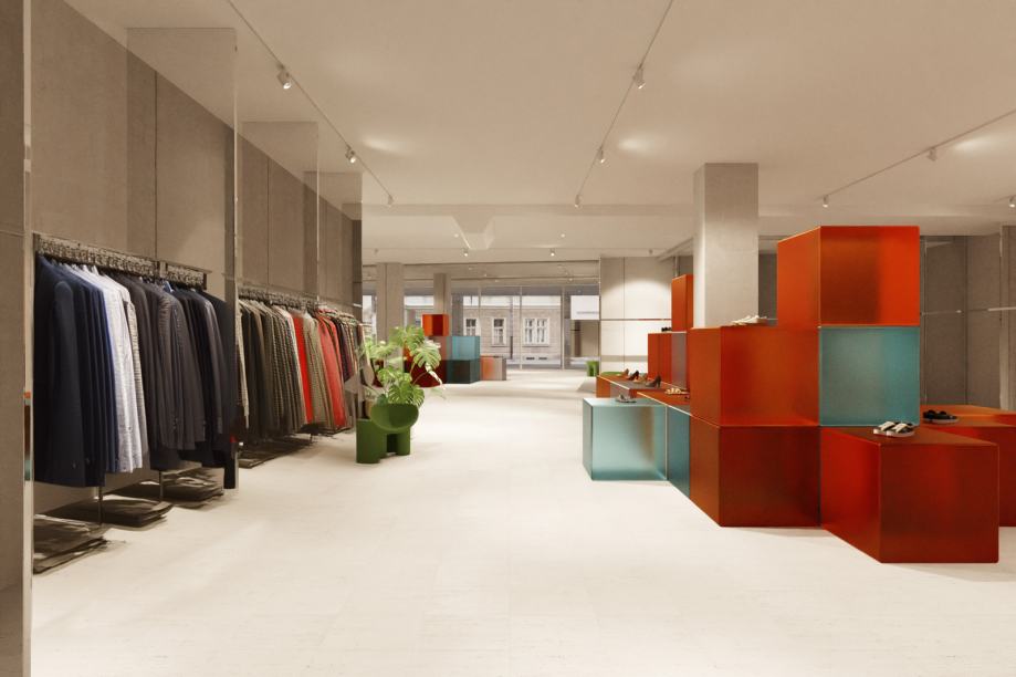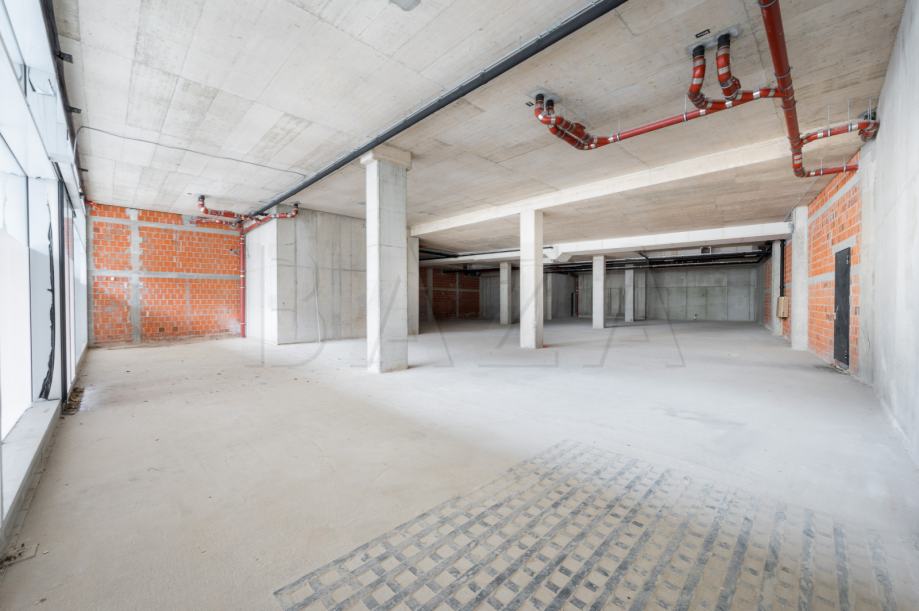Tlorisna zasnova obsega velik podolgovat prostor, ki je zgrajen do 3. podaljšane gradbene faze. Odlikuje ga vabljiv sprednji prodajni del in veliko prostora za skladiščenje. Višina stropov znaša 4,88 m. Za stavbo se nahaja delovni vhod. Prostor ima dostop do dvigala, ki vodi v kletno garažo stavbe.