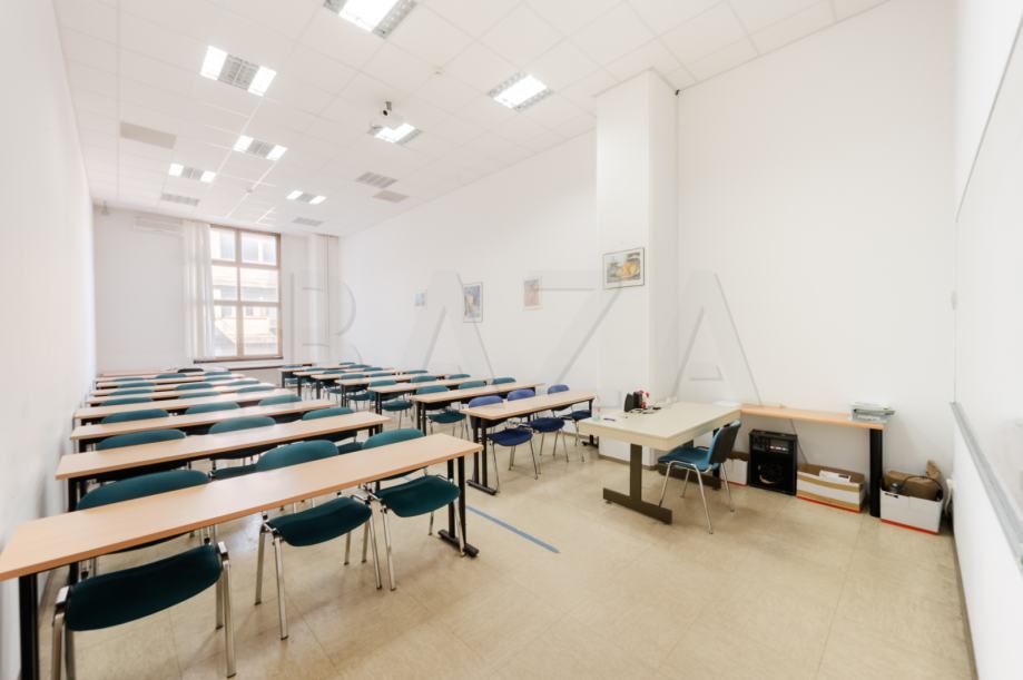 Prostori se nahajajo v drugem nadstropju in zajemajo hodnik, šest predavalnic, sejno sobo, kabinet, manjše skladišče, tajništvo ter glavno pisarno. Sanitarije so skupne v etaži. Poslovne prostore je možno obdržati v trenutni zasnovi ali izvesti popolnoma odprt tip pisarniških prostorov (open space). Poslovni prostor se prodaja opremljen s pohištvom po meri. Primerno za izobraževalne ali pisarniške dejavnosti.