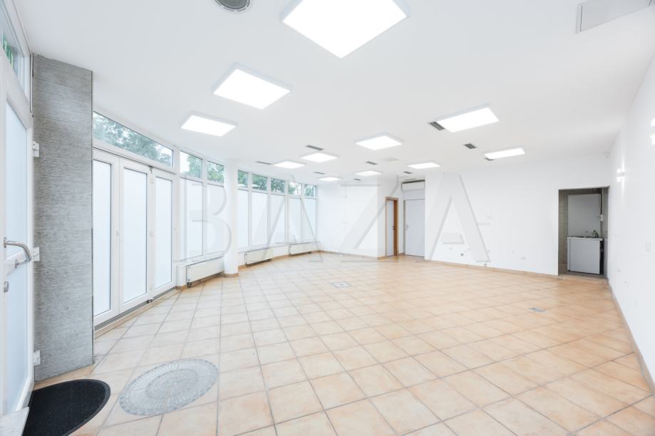 Poslovni prostor se nahaja v pritličju poslovne stavbe in obsega večji lokal z dvema lastnima vhodoma - prostoren sprejemno-izložbeni del, manjši lokal s svojim vhodom, priročno skladišče, tri ločene sanitarije ter funkcionalno čajno kuhinjo. Zasnova omogoča enostavno prilagoditev potrebam različnih dejavnosti.