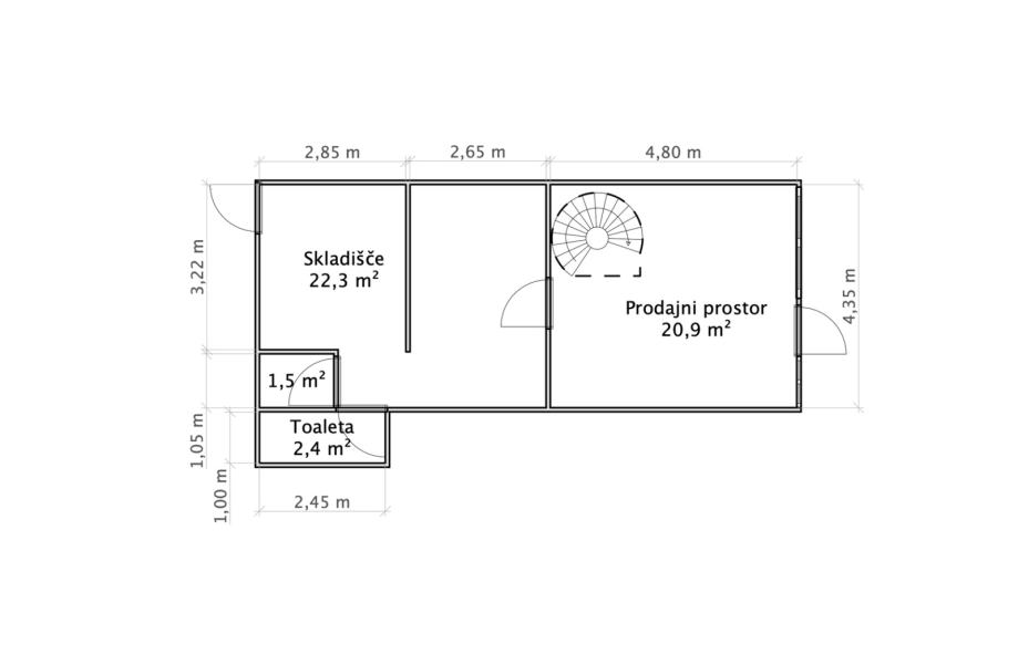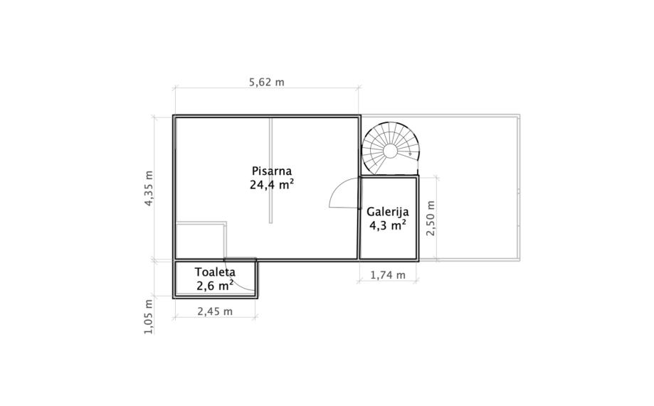 Velikost: 47,1 m² + 31,3 m² (galerija, višina = 2,2 m)