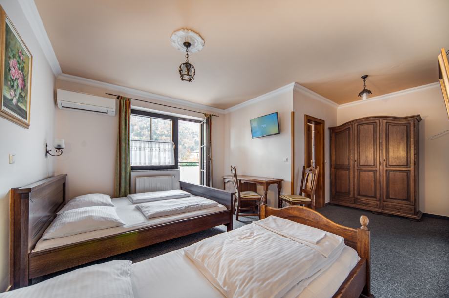 Objekt razpolaga z 15 sobami, restavracijo in lastno kavarno z zajtrkovalnico. V kleti se nahaja večnamenski prostor in shramba za smuči ali kolesa. Možno je vzeti v najem tudi samo restavracijo ali samo del s sobami.