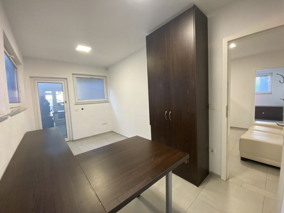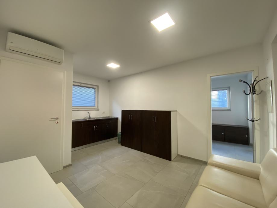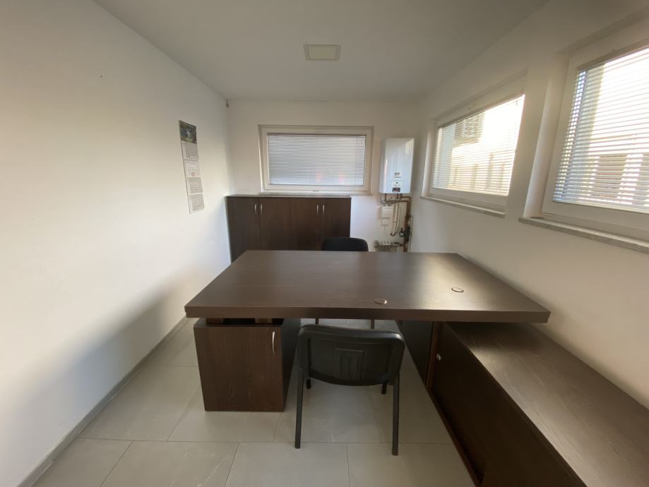 Stavba je pritlična v skupni izmeri 40m2 in zajema 2 pisarni, kuhinjo s sprejemnico in sanitarije. Vsi prostori so opremljeni, kot je vidno na fotografijah.