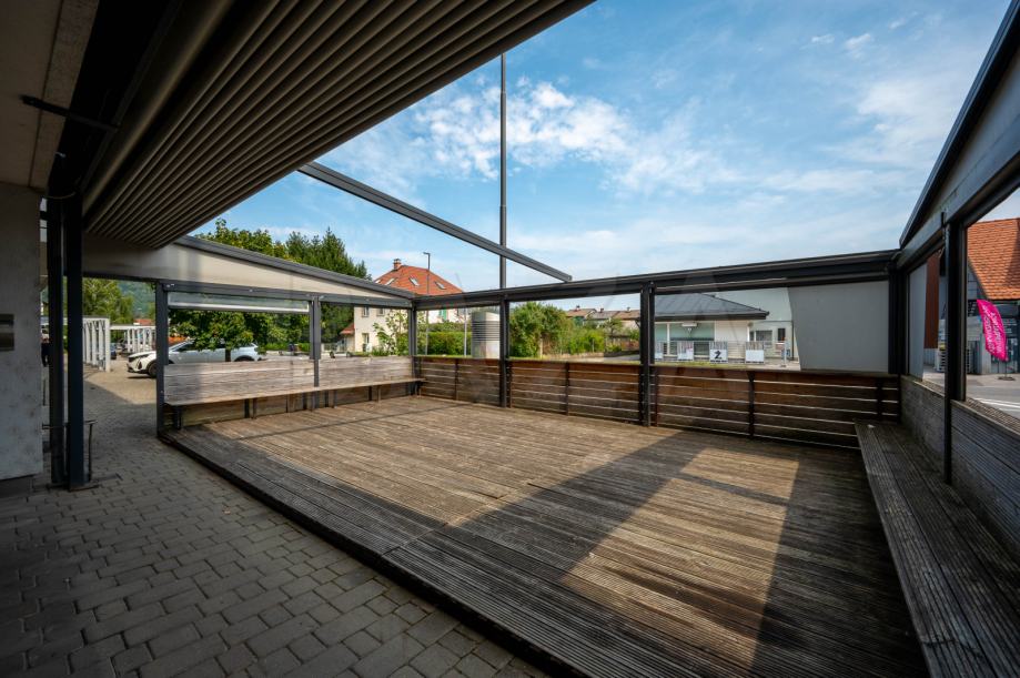 Lokal velikosti 42,50 m2 je trenutno povezan z lokaloma velikosti 70,1 m2 in 113,6 m2, ki sta bila namenjena gostinski dejavnosti. Možno je urediti ločene vhode. Tlorisna zasnova celotnega poslovnega prostora obsega sprednji prodajni prostor s tremi ločenimi prostori in sanitarijami ter zadnji proizvodni del. Proizvodni del obsega kuhinjo, hladilnico, garderobo, pisarno, skladišče, wc s pralnico in dvigalo do treh parkirnih mest v kleti. Zunaj se nahaja 50 m2 terase z nadstreškom.