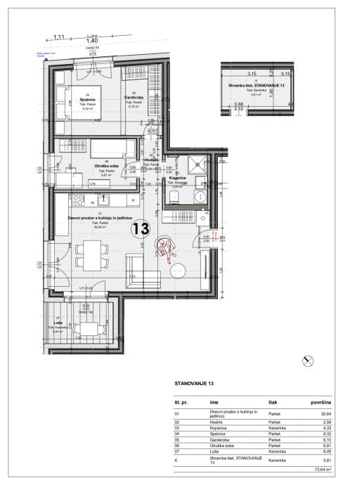 - Kletni prostor za shrambo v velikosti 5,81m2
