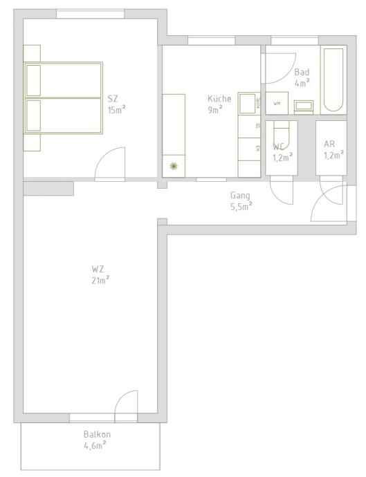 Vsi priključki za kuhinjo so na novo pripravljeni. Možna razporeditev kuhinje je razvidna s fotografij. Po želji je možno proti doplačilu vgraditi kuhinjo.