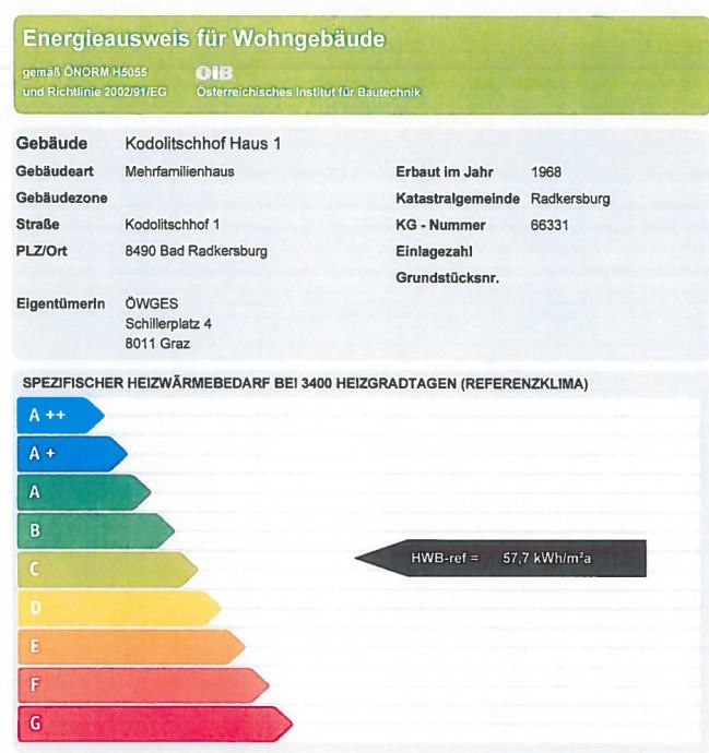 • Ogrevanje: daljinsko ogrevanje – biotoplota Bad Radkersburg (radiatorji)