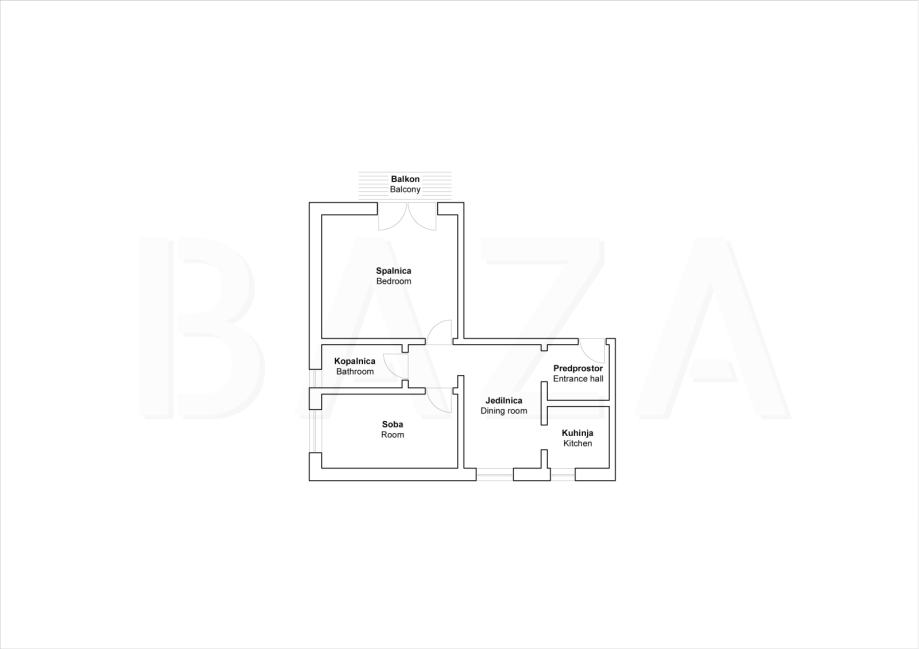 Stanovanje se nahaja v hiši z več enotami, tlorisna zasnova stanovanja obsega dnevni prostor z jedilnico, kuhinjo, dve spalnici, hodnik in kopalnico s sanitarijami ter balkon s pogledom na jug.