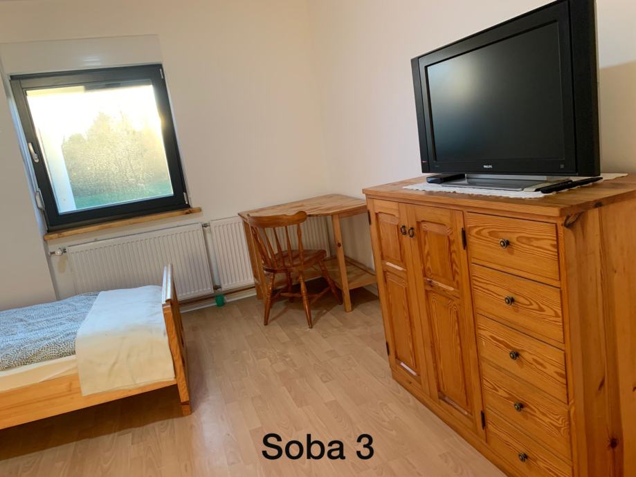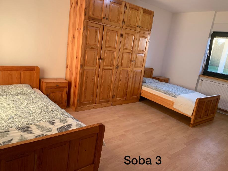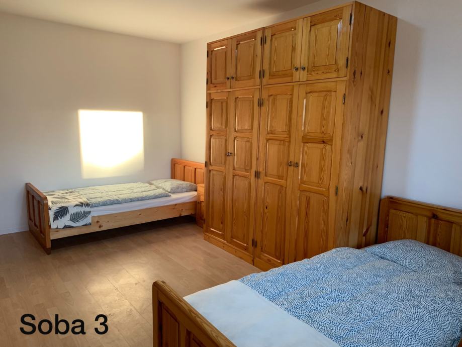 dve dvoposteljni sobi. Souporaba skupnih prostorov (kuhinja z jedilnico, kopalnica z wc-jem, pralni stroj). V vsaki sobi je tv in wifi internet. Parkirišče je (tudi za kamijon ) brezplačno. Za več informacij pokličite: 041778427 Vlado
