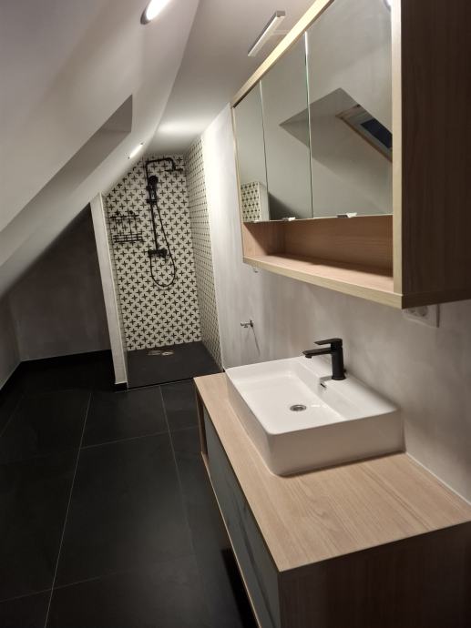 Od 1. 2. 2026 bo na razpolago za najem stanovanje z ločenim vhodom v mansardi samostojne stanovanjske hiše. Stanovanje je popolnoma opremljeno. Nahaja se v neposredni bližini osnovne šole in gimnazije. Tudi vse ostale institucije so dostopne peš ali z avtomobilom. Na razpolago je polovica zunanje ograjene površine. Stanovanje je primerno za eno ali dve osebi.
