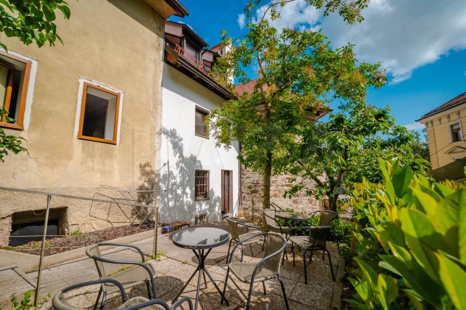 Stanovanju pripada tudi prostorna klet in urejen skupen atrij s pogledom na grajski grič.
