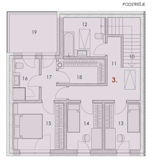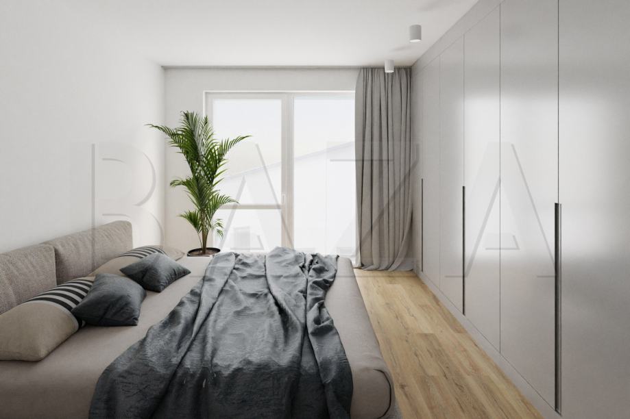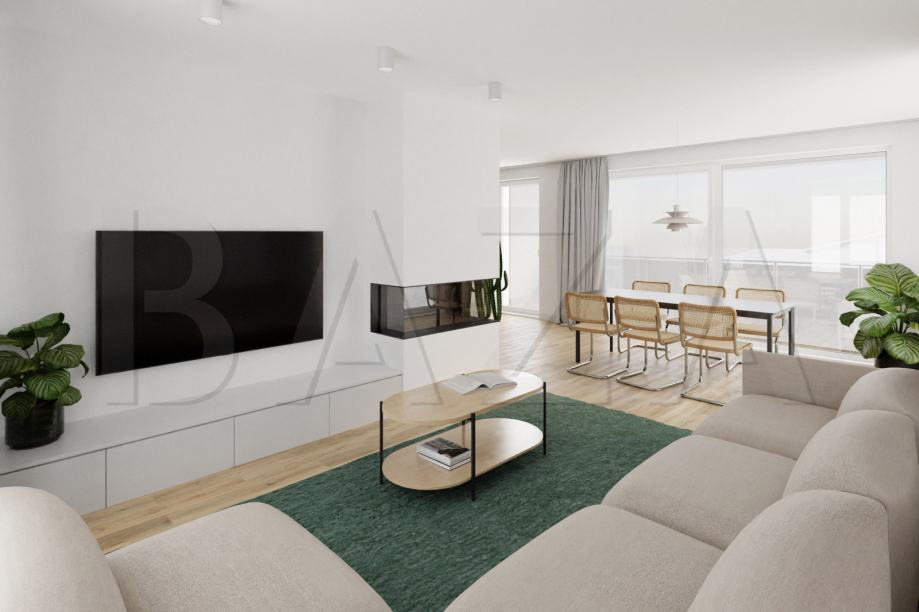 Štirisobno dupleks stanovanje odlikuje arhitekturna dovršenost s funkcionalnim tlorisom, ki obsega velik dnevni prostor s kuhinjo in jedilnico, utility, shrambo, wc in teraso v spodnji etaži, v zgornji etaži pa se nahajajo tri spalnice, dve kopalnici, garderoba in terasa.