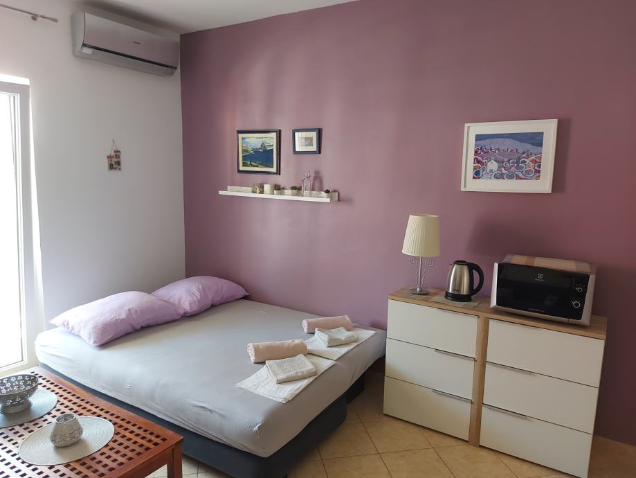 Novalja - otok Pag, čudovit apartma z veliko teraso 21 kvadratnih metrov, le 120 metrov od morja in urejene plaže ter 300 metrov od peščene plaže Babe. Stanovanje je pretežno orientirano na vzhod in jug, s terase pa se odpira lep pogled na morje. Stanovanje je v celoti opremljeno. Sestavljen je iz dnevne sobe s kuhinjo 19 kvadratnih metrov, hodnika 3 kvadratnih metrov, kopalnice s tušem 4 kvadratnih metrov, spalnice 11,5 kvadratnih metrov, terase 21 kvadratnih metrov in parkirnega mesta. 12 kvadratnih metrov. Stanovanje je neobremenjeno. Do plaže in morja lahko pridete v 1 minuti. Do središča Novalje po čudoviti promenadi pridete v 10-12 minutah. Vgrajena je nova klimatska naprava Panasonic z inverterjem in detektorjem gibanja 4,2 kW, ki je tako za ogrevanje kot za hlajenje. V bližini je veliko restavracij in kavarn. Izjemna priložnost za družino, ki bo večji del leta preživela ob morju na lepi, prostorni terasi! Apartma je kategoriziran za tiste, ki se želite ukvarjati s turizmom!