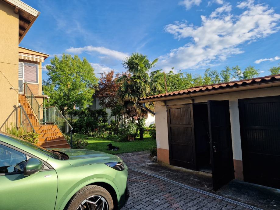 Opomba: stanovanju pripada 577 m2 stavbnega zazidalnega zemljišča z vrtom in garaža, urejen vhod na parcelo, nepremičnina je na mirni lokaciji 2 km od meje z Italijo