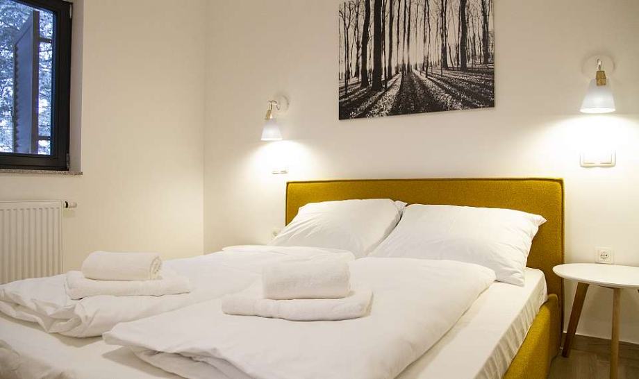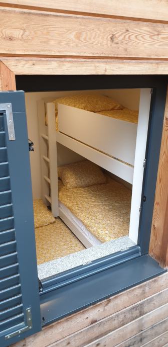 - 7 ležišč (zakonska postelja, pograd, zofa) = 2 spalnici