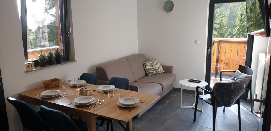 OPIS: - naš apartma je v samem centru planine in s tem v neposredni bližini smučišča Golte