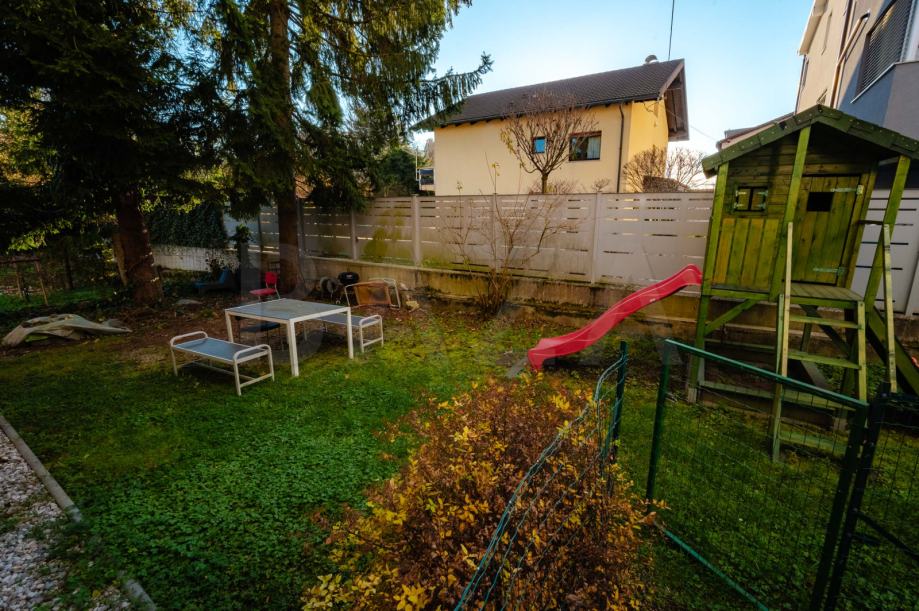 Stanovanju pripadata tudi klet in garaža ter souporaba skupnih prostorov in dvorišča.