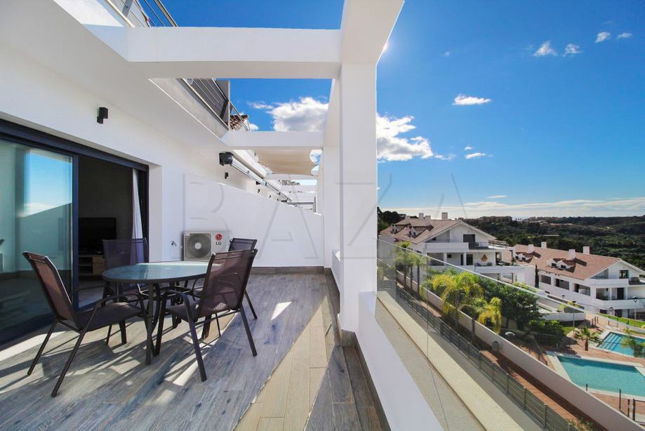 V prestižnem predelu New Golden Mile, med Marbello in Estepono, prodamo 5-sobno dupleks stanovanje z jugozahodno orientacijo, ki ponuja osupljive razglede na gore in Sredozemsko morje.