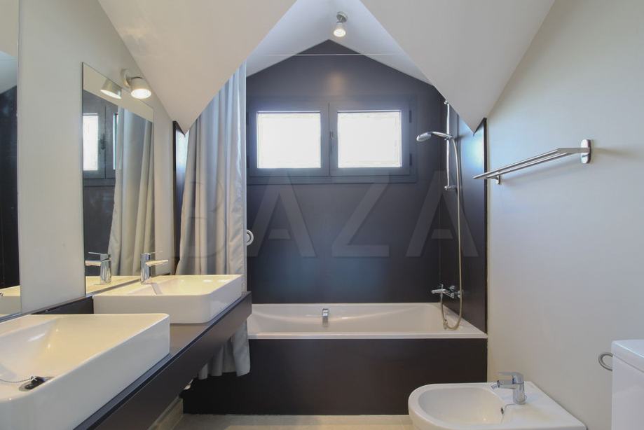 Zaradi kotne lege stanovanja, se dnevna soba ponaša z dvojnim razgledom in veliko naravne svetlobe. Moderna kuhinja je opremljena z aparati Bosch ter povezana z dodatno sobo in sanitarijami. Zgornje nadstropje obsega dve spalnici in dve kopalnici, z dostopom do terase.