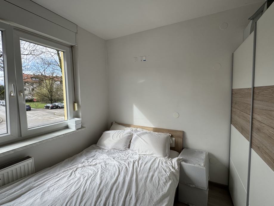 Stanovanje obsega kuhinjo z dnevnim prostorom in izhodom na balkon, predsobo, kopalnico skupaj z wcjem in spalnico. Stanovanju pripada tudi večja shramba v kleti, ter skupna kolesarnica.