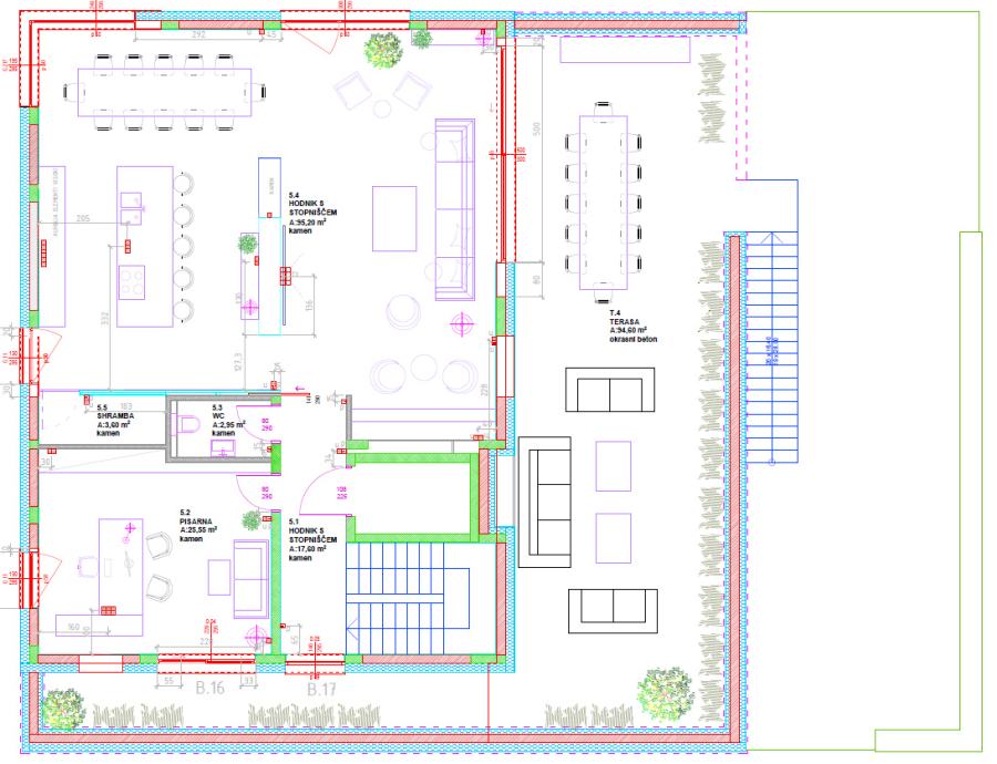 V najvišji etaži se nahajajo razkošen dnevno bivalni prostor s kuhinjo, jedilnico ter vinoteko, ločena je še pisarna ter idilična terasa z najkvalitetnejšim senčilnim sistemom.